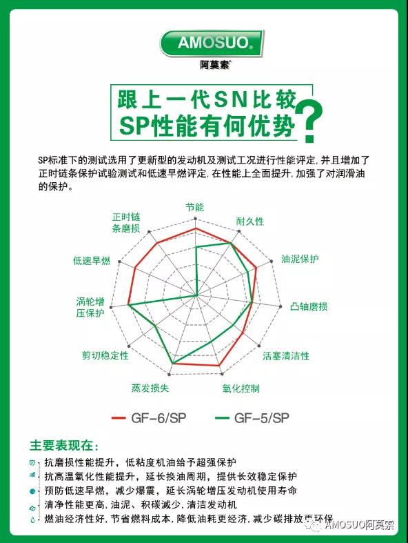 以下为阿莫索SP/GF-6*级别产品的6大优势及和SN+/GF-5相比,在性能方面的提升。